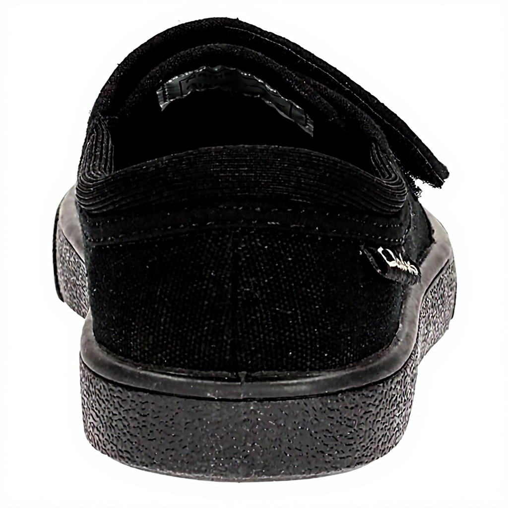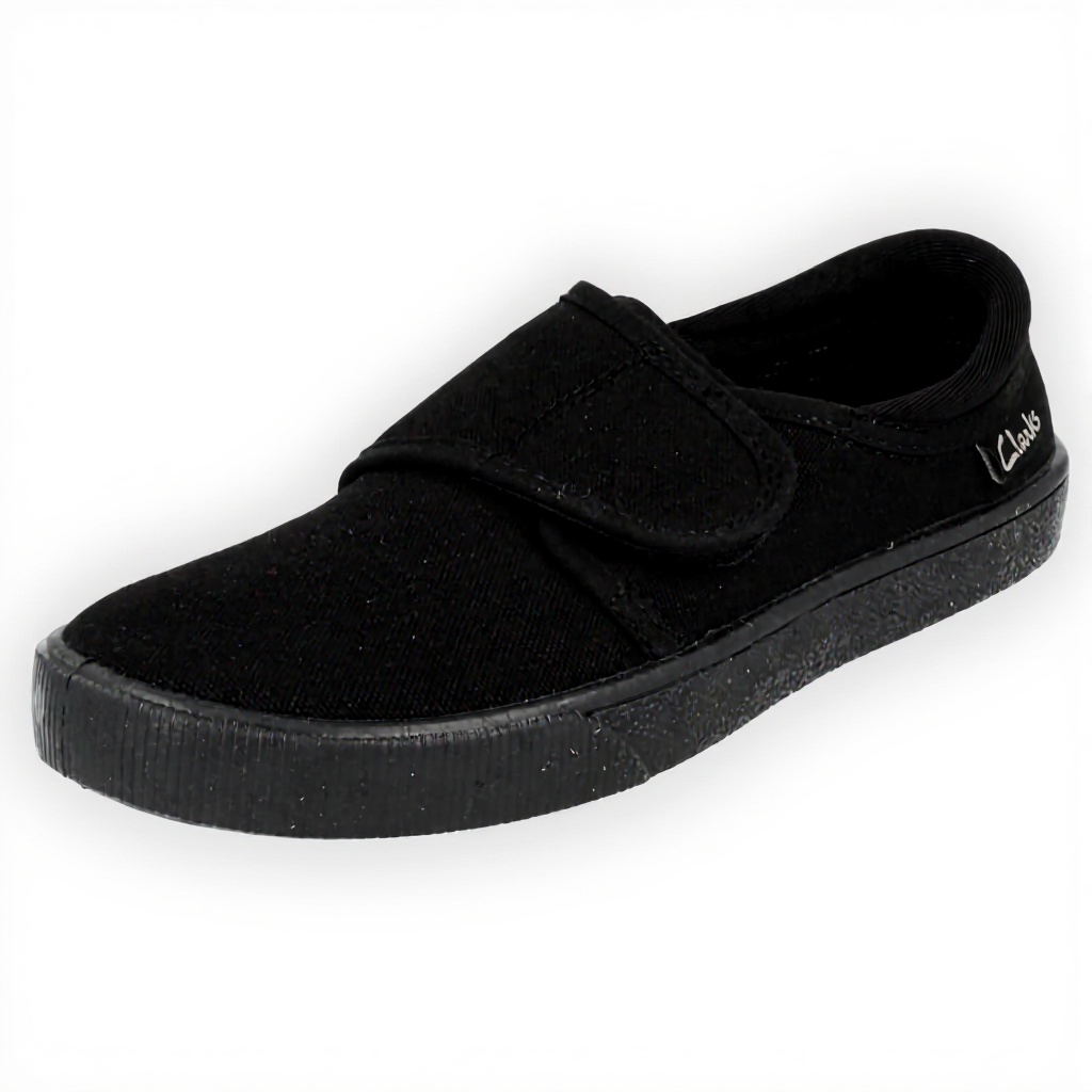 The black fabric upper is designed for easy maintenance with simple wiping or gentle cleaning methods to maintain their school-ready appearance.