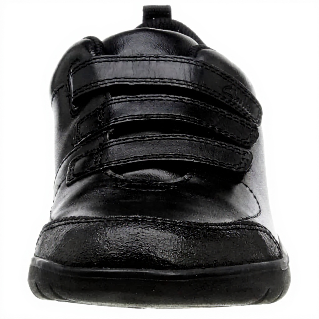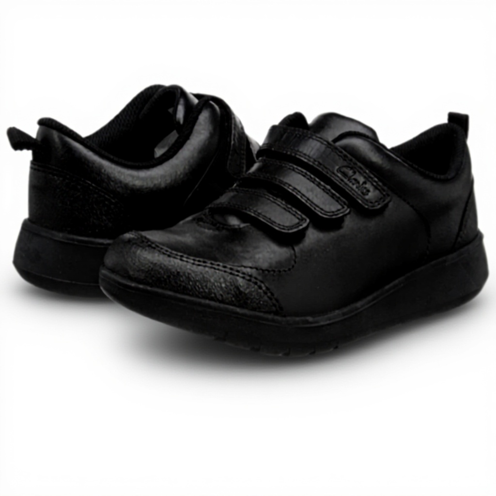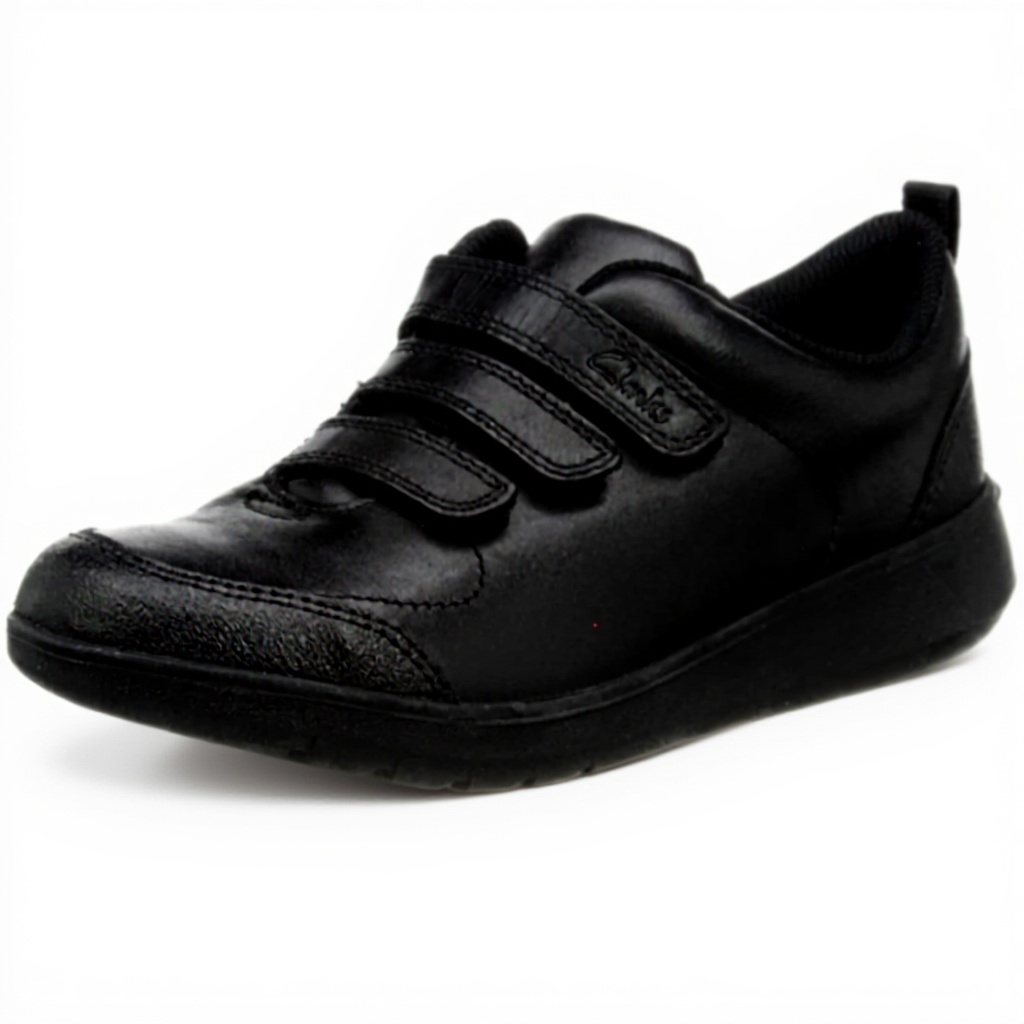 These durable school shoes are crafted from premium black leather with a triple riptape fastening system for secure fit and easy adjustment. The design includes reinforced protective accents on both toe and heel areas to withstand daily wear and tear from active children. The lightweight rubber sole features flex grooves that enhance natural foot movement, while the padded collar and antimicrobial-infused lining provide superior comfort and hygiene throughout the school day.