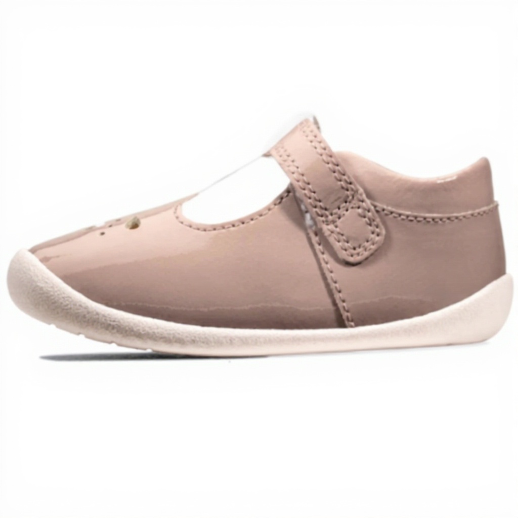 Crafted with sweet patent uppers and authentic cut-out details, this pre-walker flat includes a riptape strap designed as a T-bar for easy on and off. Underfoot, layers of cushioning and a grippy sole provide stability, while the padded collar ensures all-day comfort during early walking stages.