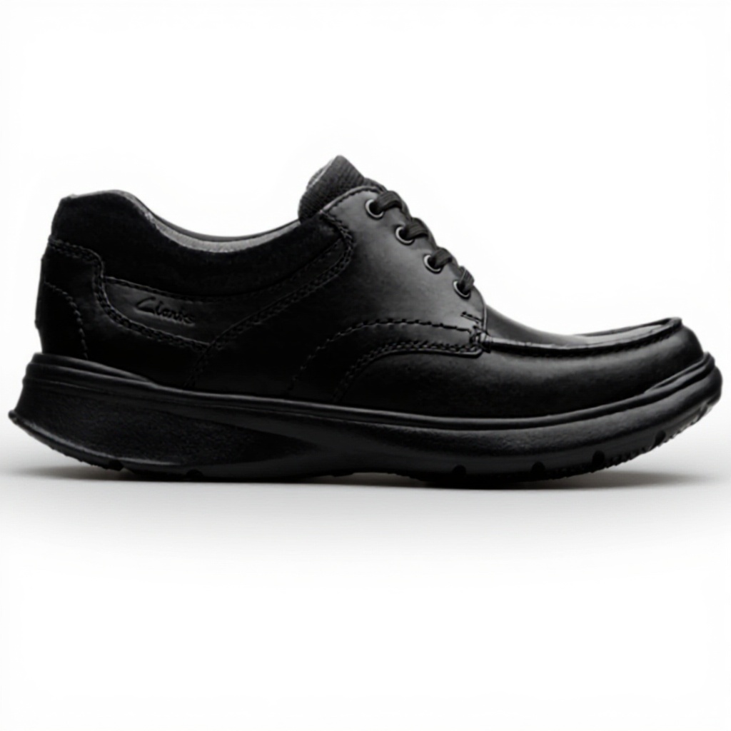 The Clarks Northam Edge Loafer showcases premium smooth leather construction with a focus on responsible sourcing. These shoes feature a traditional lace-up design enhanced by lightweight materials that provide exceptional comfort throughout the day. The classic black colorway offers versatile styling that complements both formal and casual attire.