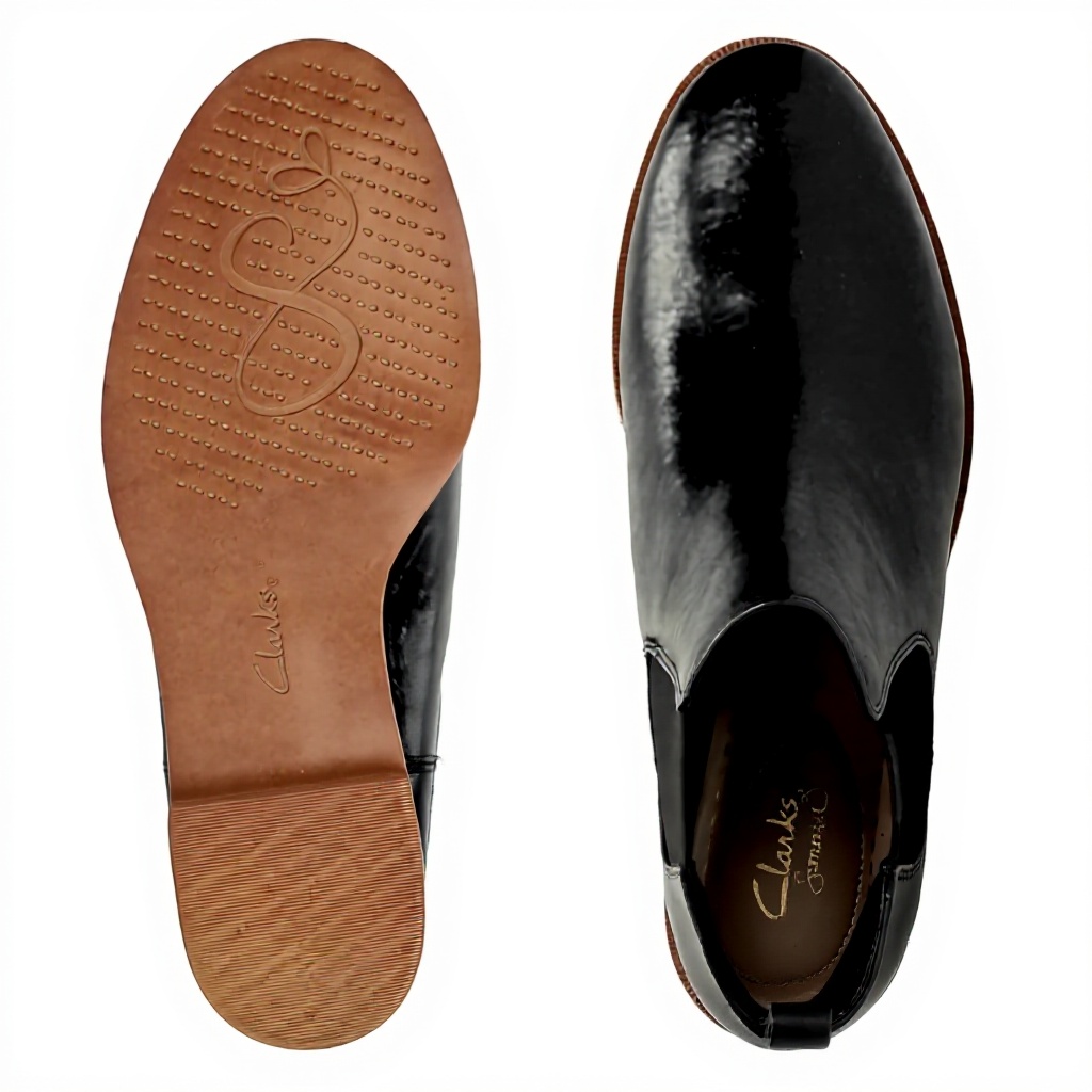 The Clarks Taylor Shine Chelsea Boots showcase premium leather construction combined with innovative comfort technologies. These ankle boots feature the brand’s signature Contoured Comfort design and Cushion Plus technology, providing exceptional support and cushioning. The elastic side panels offer easy slip-on convenience while maintaining a secure fit.