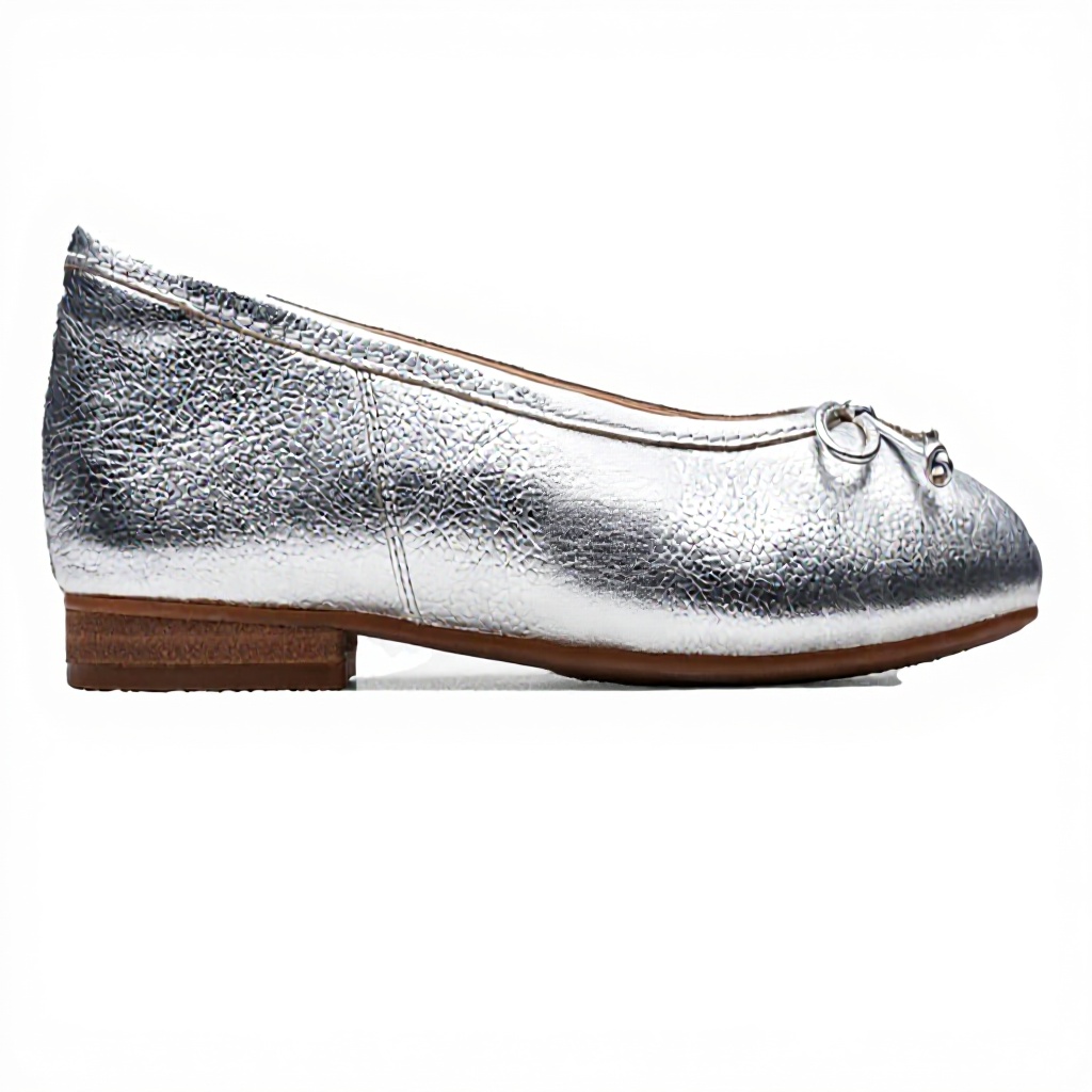 Clarks Women’s Ballet Flats Silver Leather Comfort Fit