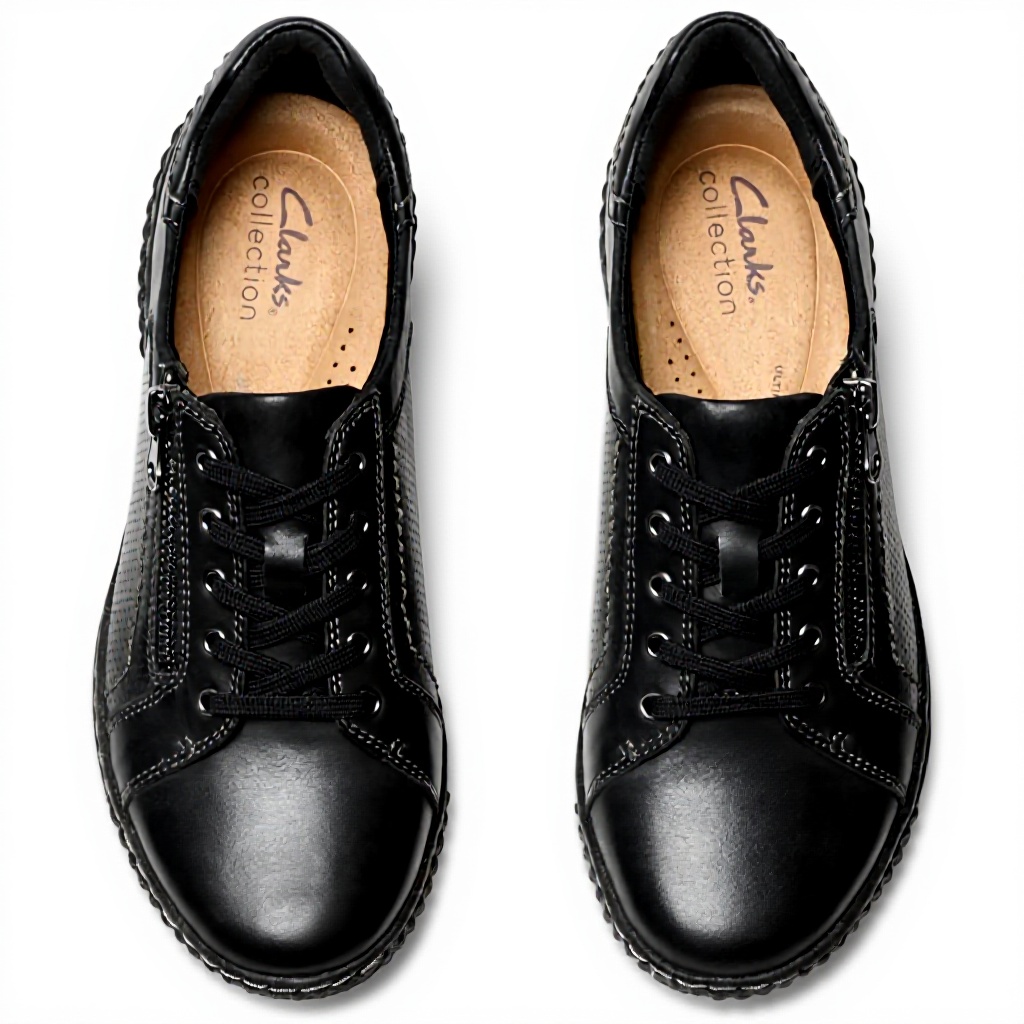 The Clarks Caroline Janna Sneaker showcases a sophisticated round toe design with a practical side zipper closure for easy wear. The diagonal layer pattern on the vamp adds visual interest, complemented by mini detailing along the top line and side panels. These fashion trainers incorporate Clarks’ signature Ultimate Comfort Foam Footbed technology and a reliable non-slip sole, making them both stylish and functional for everyday use.