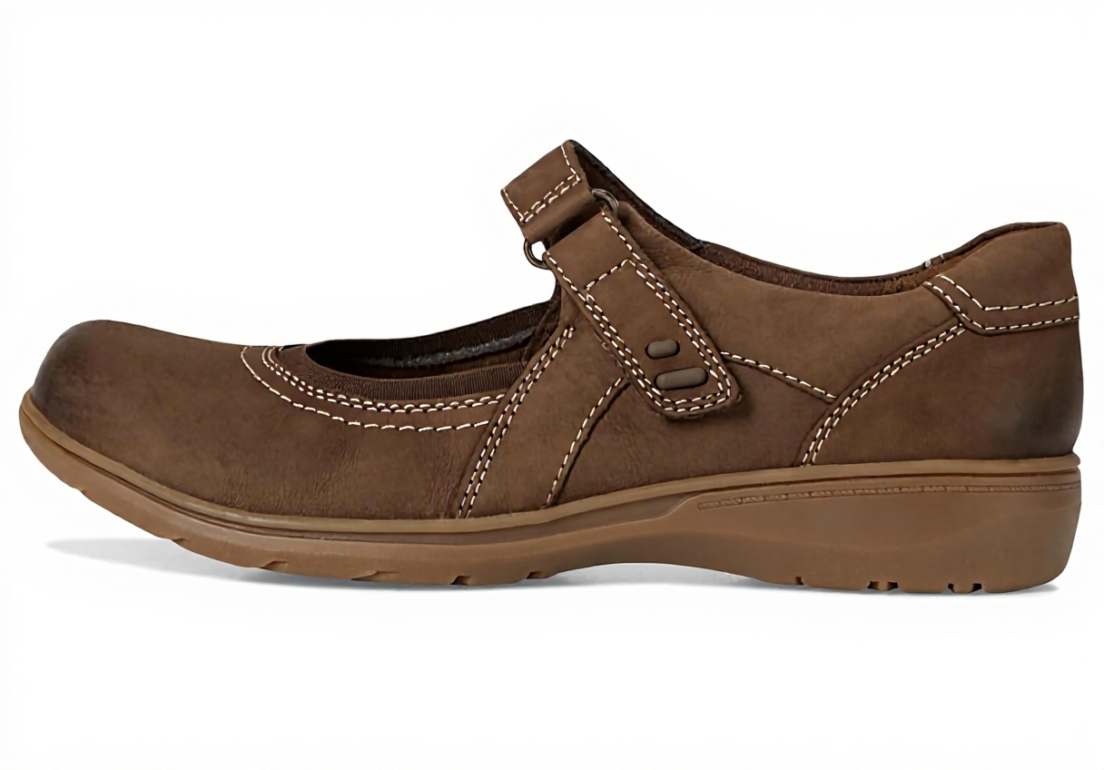 Crafted with premium mushroom nubuck or black leather uppers, these Mary Jane flats offer a blend of durability and style. The adjustable riptape strap ensures a secure fit, while the padded toplines and Ultimate Comfort foam footbed provide lasting cushioning. The flexible TR sole delivers reliable traction for everyday use.
